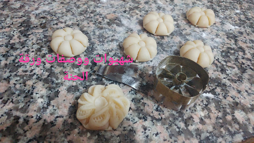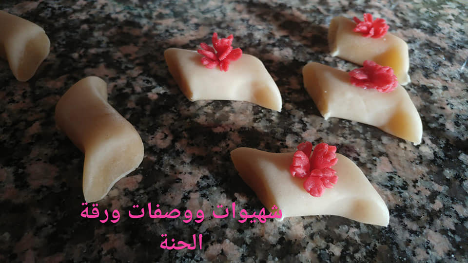 تقطع الحلوة بالسكين و تشكل كما هو واضح في الصورة