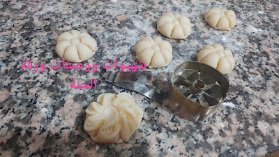 تغطى عقدة اللوز بالعجين و نشكل منها كرة تطبع بالطابع لي فالصورة و تنقش بالمنكاش