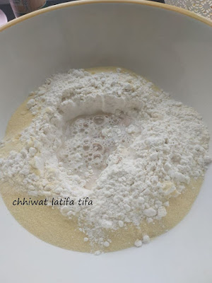 كنخلطو الدقيق مع سميدة والخميرة نجمعوهم بشوية الماء عاد نزيدو الملحة نجمعو العجينة وندهنها بشوية زيت البلدية ونخلوه تخمر مزيان 3 ساعات حتى 4 ساعات (قد ما خمرات كتكون حسن )