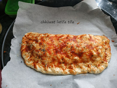 نكرصوهم على شكل دائري ندهنوها بصوص بيتزا ونديرو الحشوة ونسدها مزيان ندهنوها بصوص بيتزا الفوق مع شوية شنوج أو البافو(الخشخاش)ونديرها طيب وبالصحة والراحة