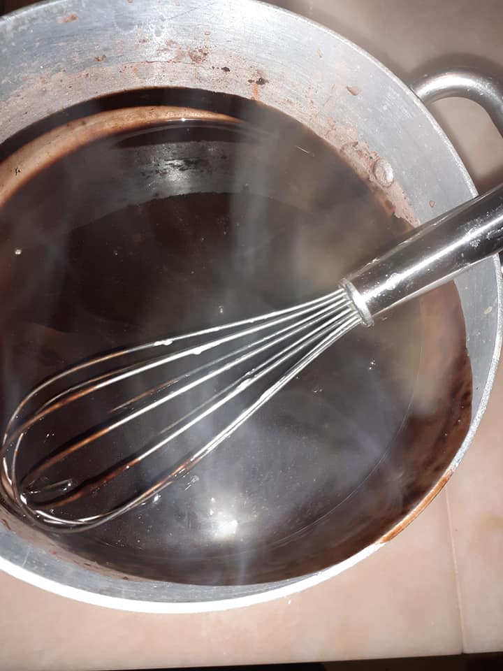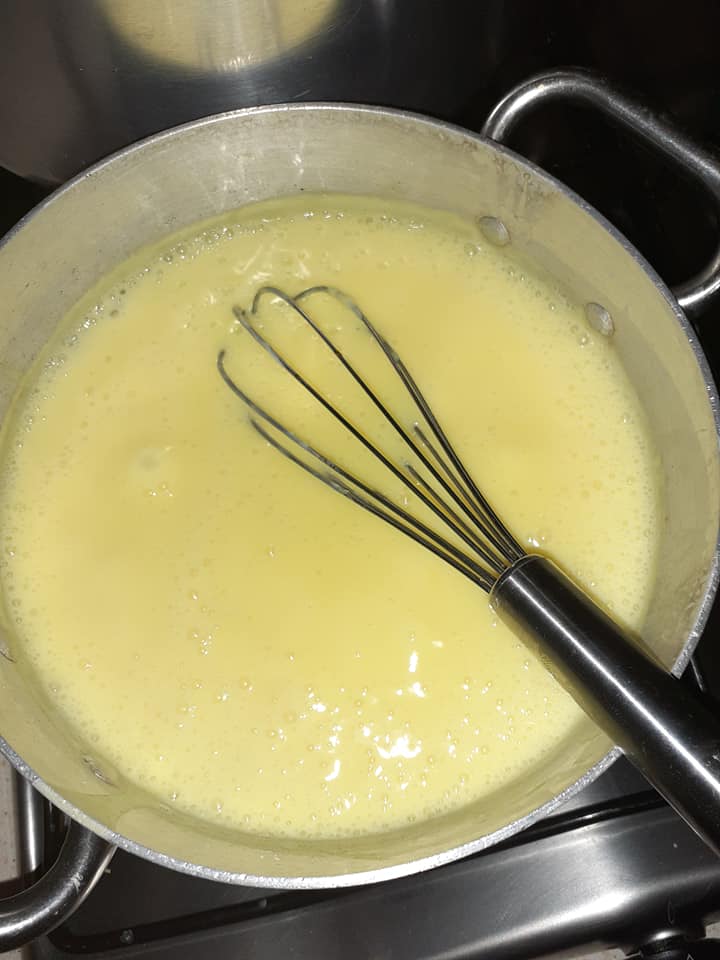 تخلط كل المكونات جيدا مع بعض و توضع على النار حتى تعقد و تصب مباشرة فوق ليبدوار
