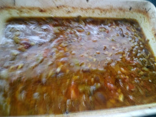نحرك مرة مرة حتى اتقلى جيدا ثم نضيف الماء بكمية زائدة ونتركه ليطهى يغطى بورق الطهي
