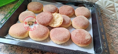 نصفف خبيزات في طاوة فرن و نتركم حتى يتضاعف حجمهم