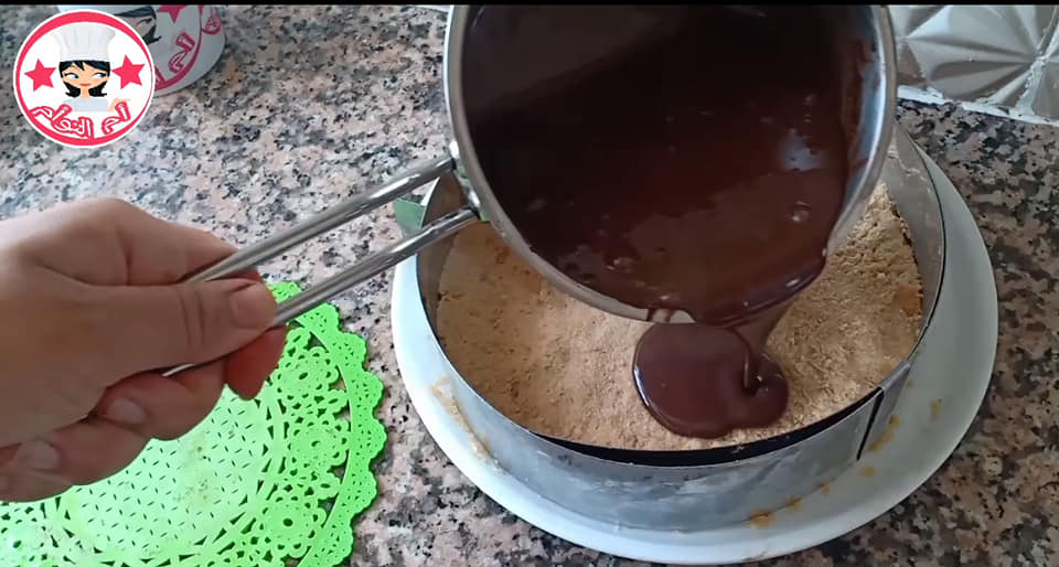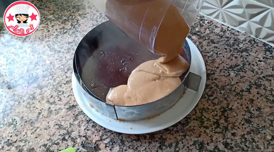 نضع مكونات الطبقة الثانية فوق النار حتى تعقد و نصبها فوق الطبقة الاولى
