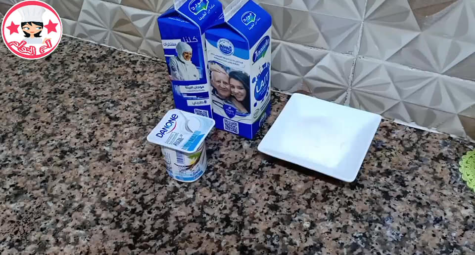 نترك الحليب ليبرد قليلا ثم نضيف له الياغورت ثم نخلط بواسطة الخلاط اليدوي جيييييدا حتى تتجانس المكونات جيدا