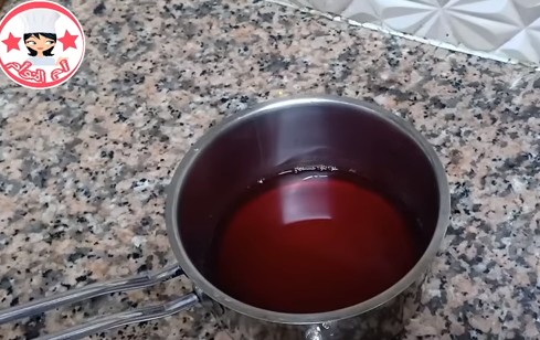 في اناء نضع ماء الباربا مع السكر و نخلط