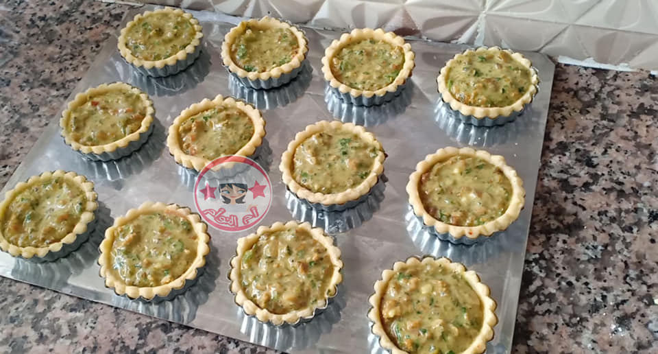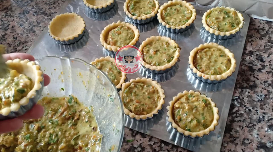 نخلط مكونات لاباراي و نخلطها مع الحشوة و نملأ بها عجينة الكيش و الى الفرن