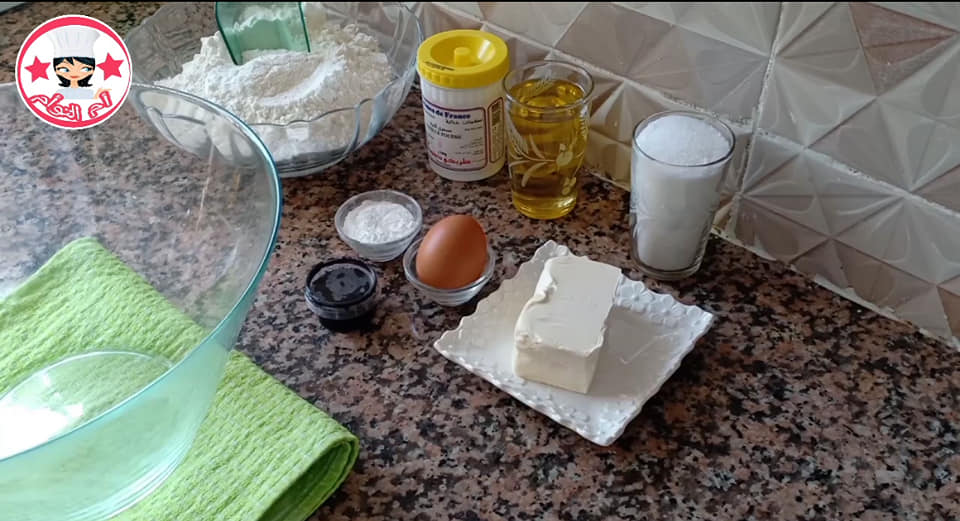 تجمع مكونات و العجين و نتركها لترتاح قليلا ثم نبسطها