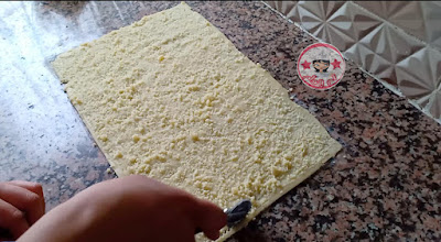 تجمع مكونات العجين حتى تتجانس مع بعض تبسط كما في الصورة