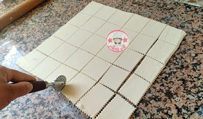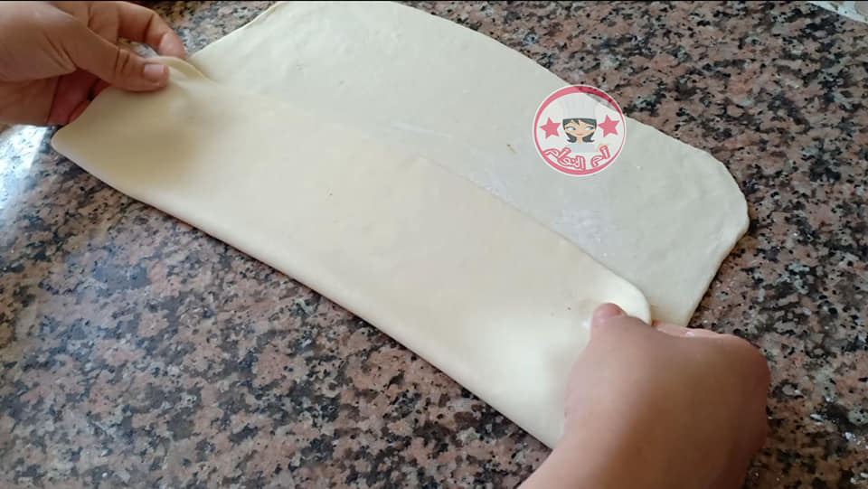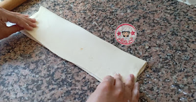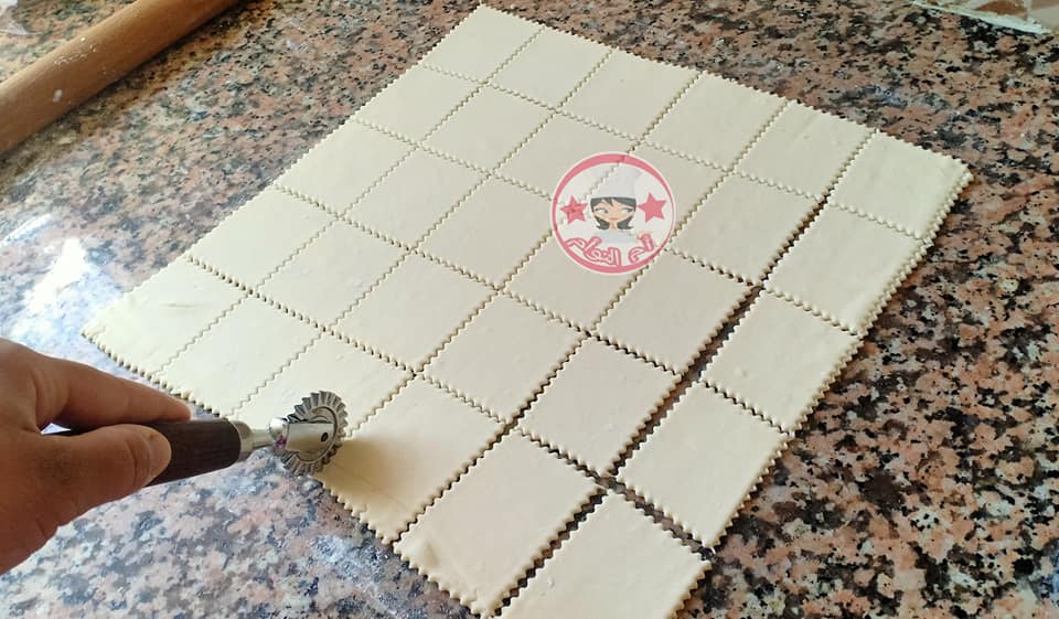بواسطة النشا نبسط العجين على شكل مستطيل