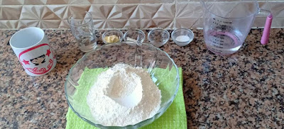 نجمع مكونات العجين جيدا و نتركها لترتاح قليلا