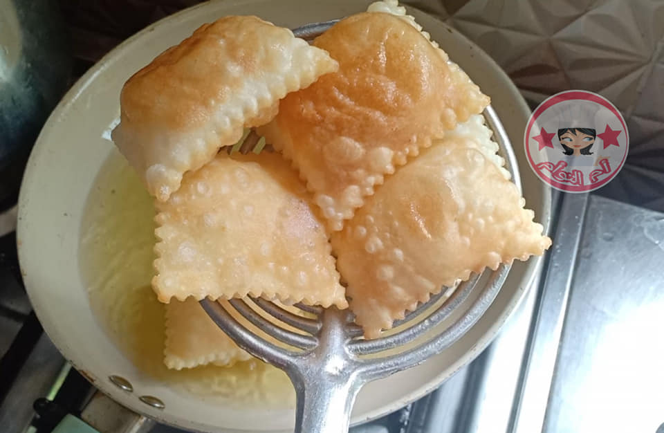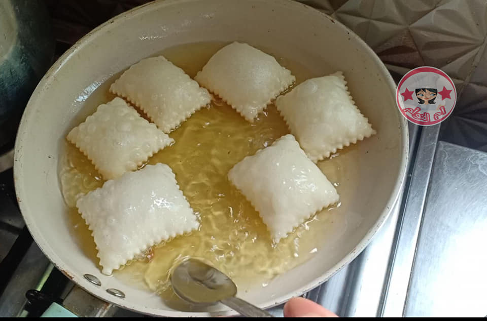 تقطع عجين الرغايف مربعات و مباشرة تقلى في زيت ساخن