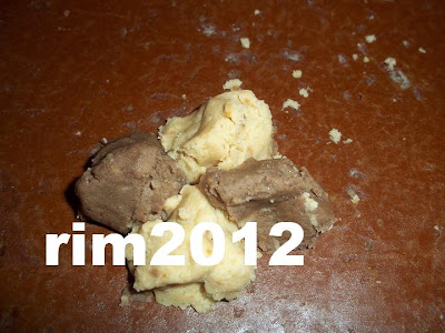نفس مقادير البهلة بكاوكاو نقسمو العجين على2 ونعملو في واحدة م ك كاكو وندلكوها ينساجم معاها ونشكلو كيف ماهو موضح بالصورة