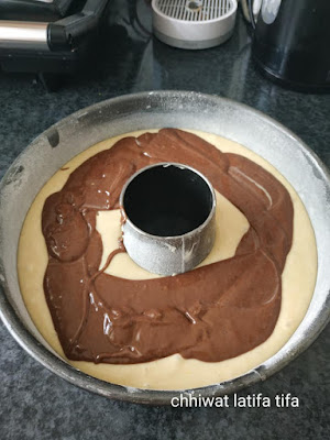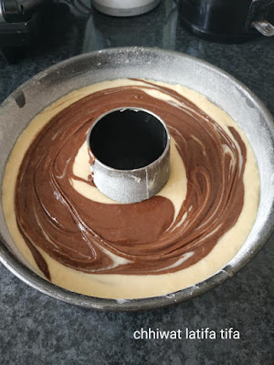 نصبو الخليط فالمول نخليو فيه شوية نزيدو عليه الكاكاو