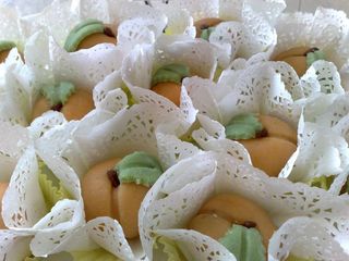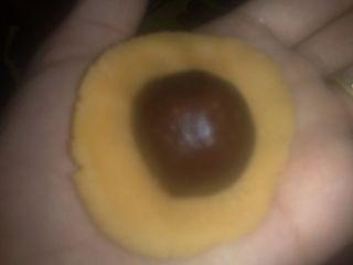 بسكوي بالشكلاط مطحون +طرف صغير الزبدة +1 ملعقة ماء الزهر +عسل + قليل من اللوز او كركاع او بسطاش مهرمش