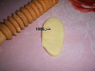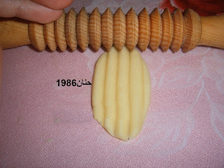 كذلك الحشوة تجمع و تدلك جيدا و نشكل التمر على شكل حرابل
