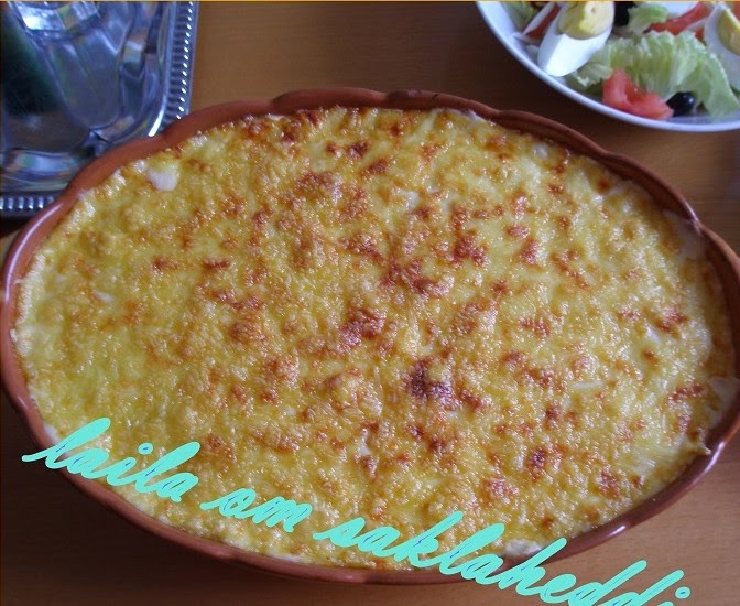 نسلقو المقرونية مع شوية الملح وملي طيب نقطروها من الماء ونخلطوها مع لاصوص ونديروها فمول تايدخل للفرن ونخويو لاصوص بشاميل و من بعد نديرو الفرماج محكوك