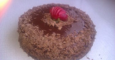 تدهن الكيكة كلها بباقي كريم شانتيي ثم نزينها بالشكلاط المحكوك