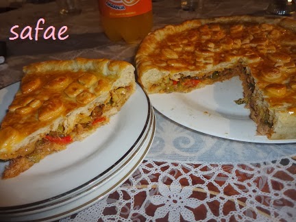 ثم نضيف باقي العناصر و نجمع العجين بالماء للحصول على عجين صلبة شيئا ما ثم نحتفض بها جانبا لساعتين و تصبح جاهزة للاستعمال