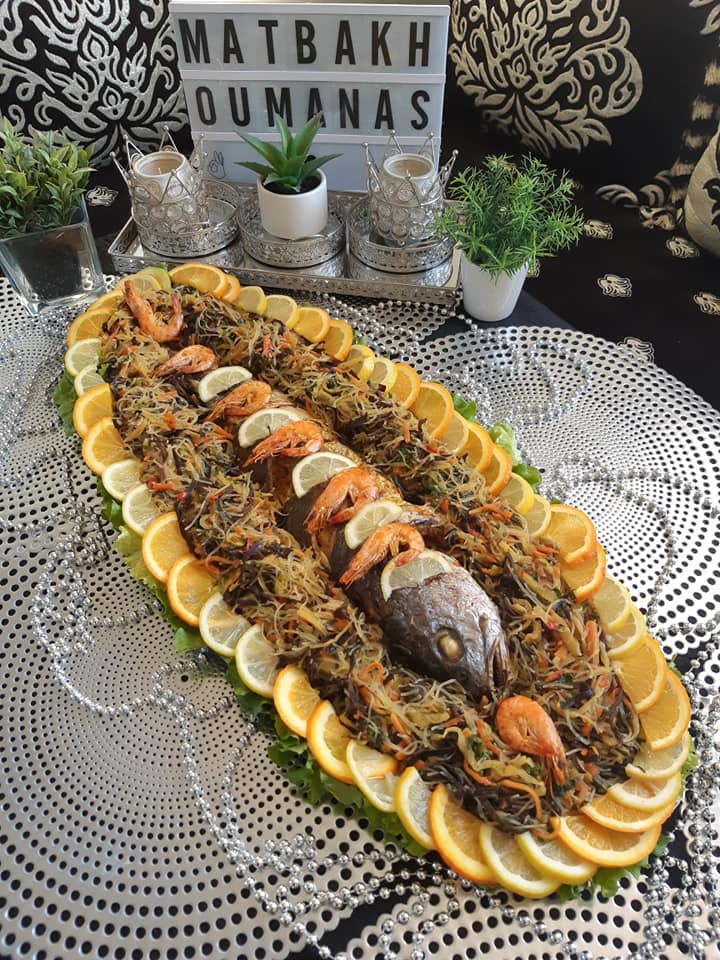 موقع بسمة من matbakh Oumanas يقدم حوتة معمرة فالفران مرافقة بالخضر بتقديم عصري