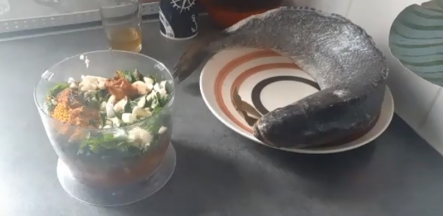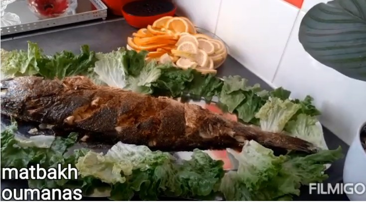 من بعد ما كطيب الحوتة نوضعوها فطبق التقديم و نفرشو الجوانب بالخس