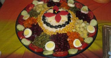 تزال الشباكية من العسل ثم توضع في صحن وتزين بالزنجلان المحمص