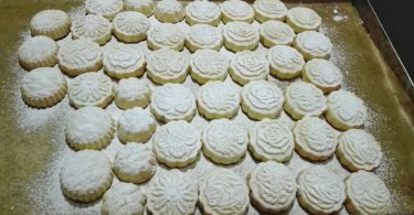 نصب الخليط في صينية مدهونة بالزبدة و الدقيق و ندخلها لفرن ساخن على درجة حرارة 180 حتى ينضج الكيك