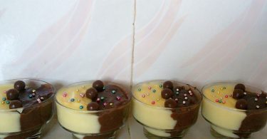ثم نزيلهم و نضيف لهم الياغورت و الشكلاط مع التحريك جيدا