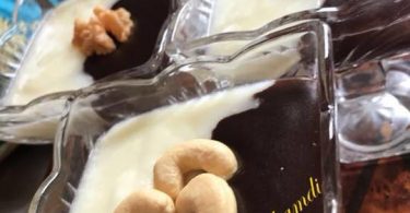 ثم ندهنه باصفر البيض مع القليل من القهوة سريعة الذوبان و قطرات من الخل