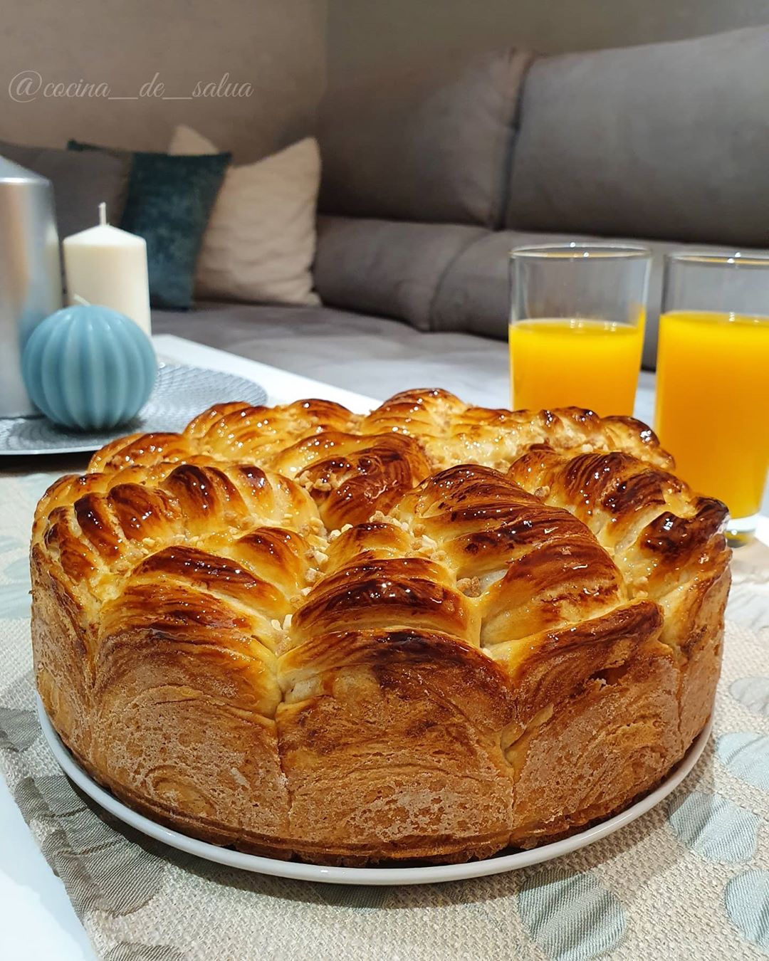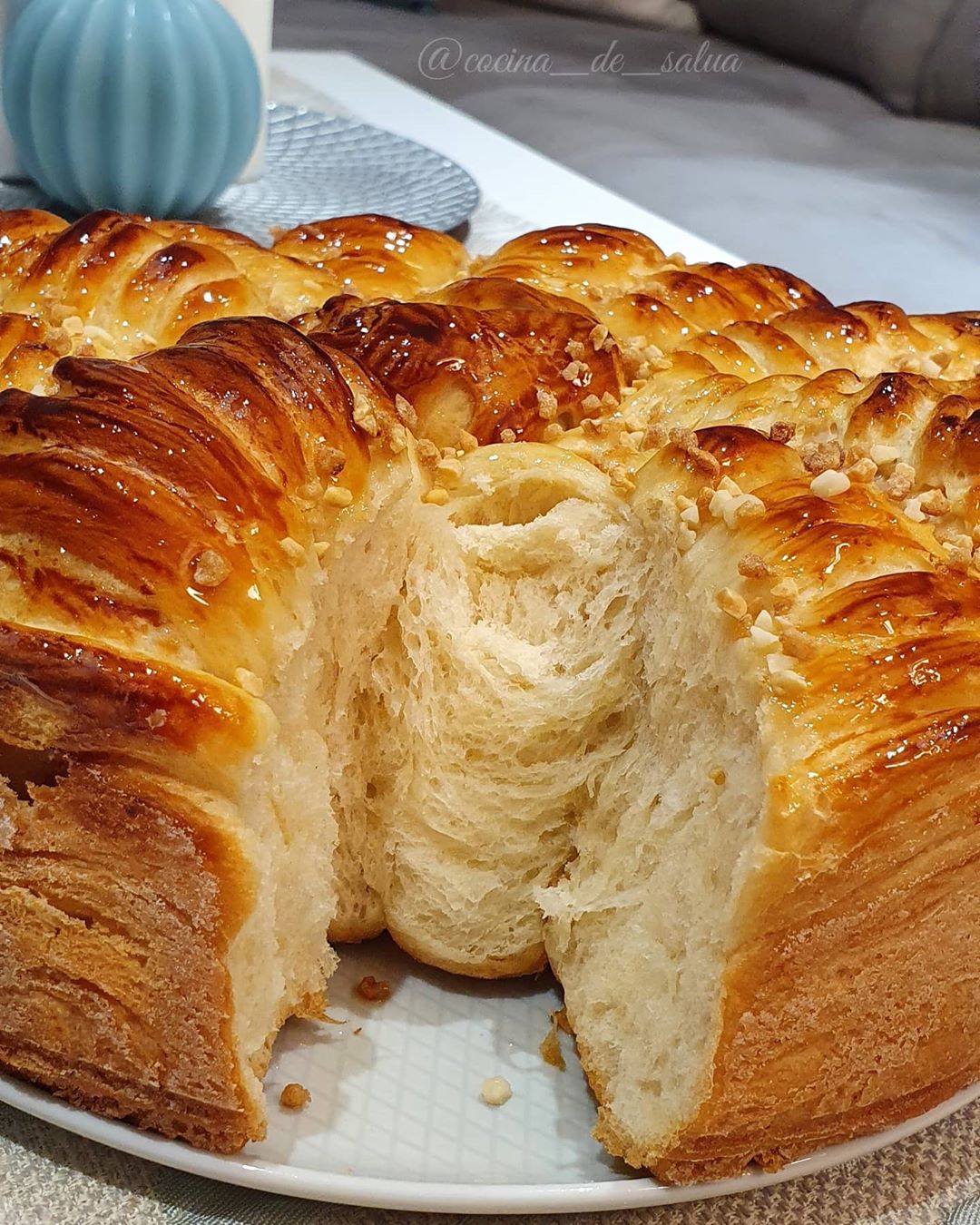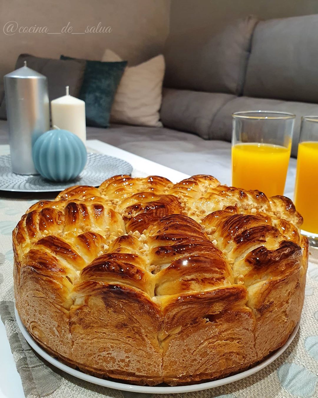 ملي نعجنو العجينة نخليوها حتى تخمر مزيان و يتضاعف الحجم ديالها نشكلوها كما هو موضح في الصور ونخليوها حتى توصل نصف الإختمار و ندهنوها باليوغورت و نخليوها تكمل الإختمار عاد ندخلوها الفرن مسخن على درجة حرارة هادئة ( نفس الدرجة لي كطيبو عليها الكيك )