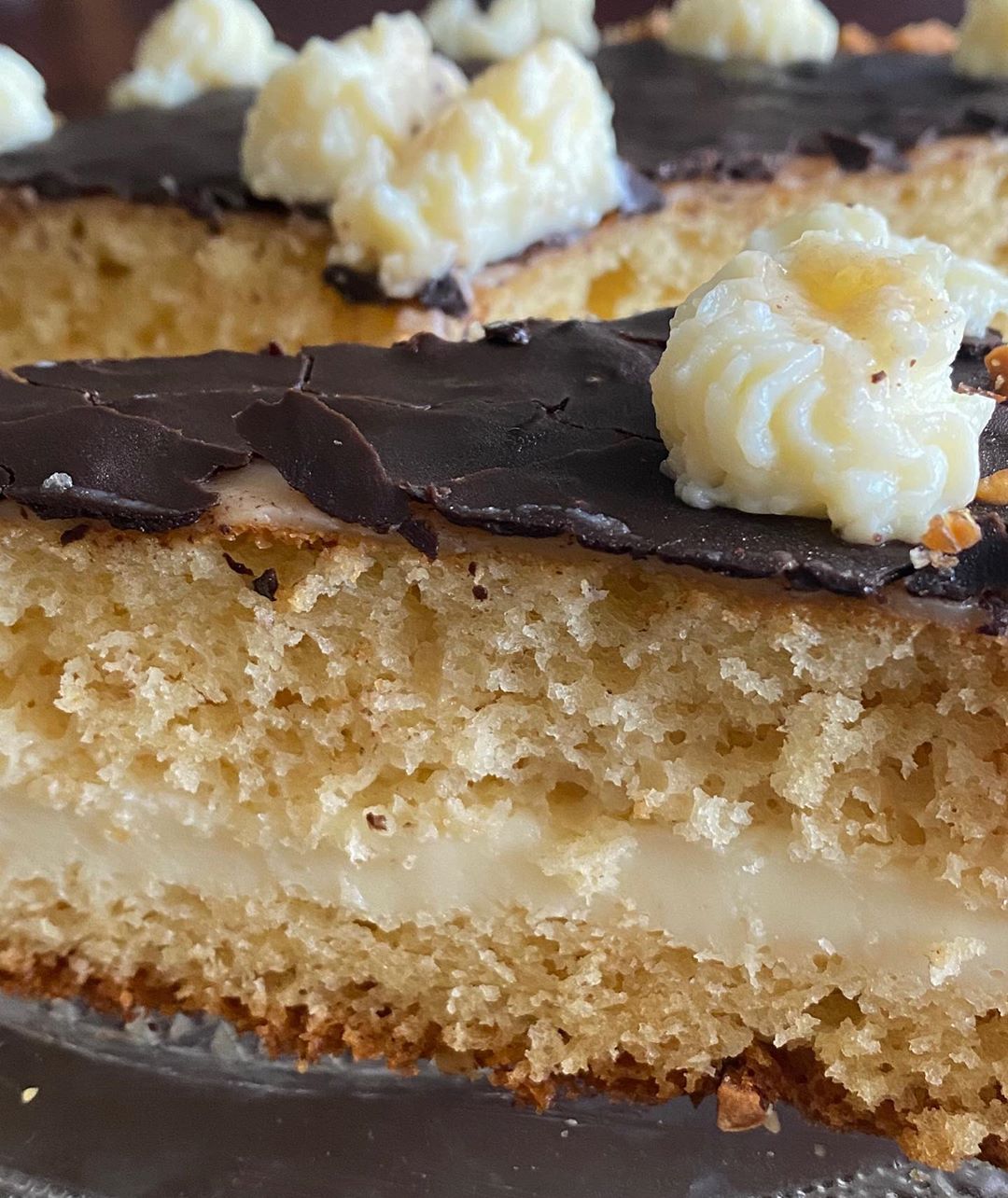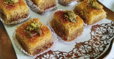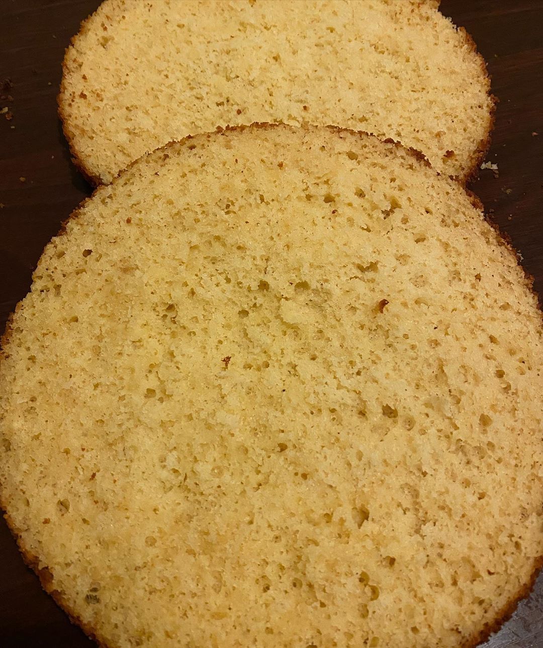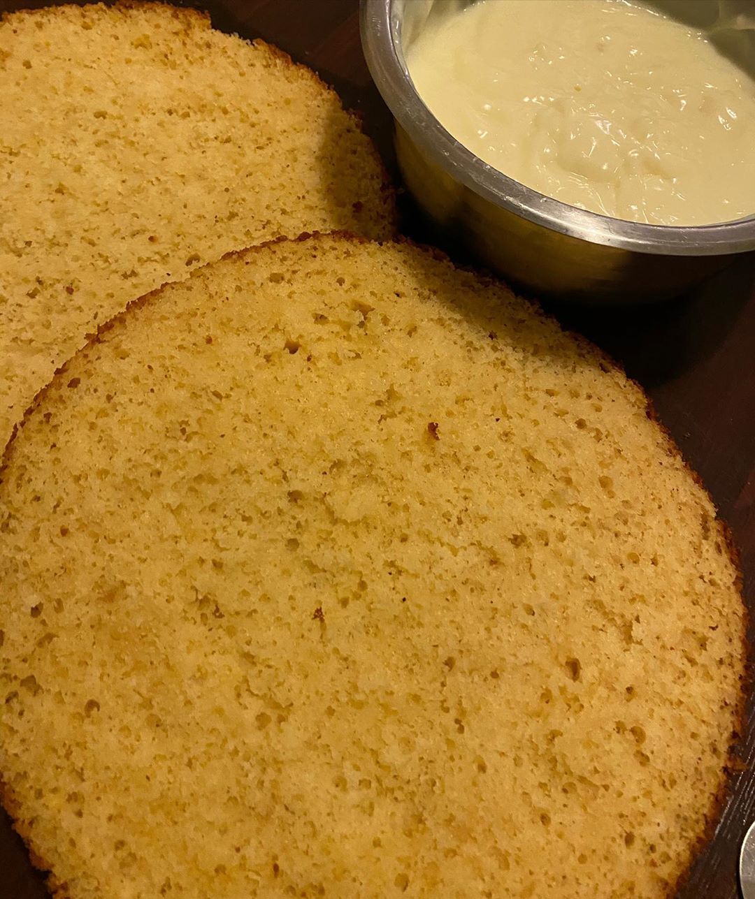 وكنقسمو على 2 وكنعمل الطبقة الاولي وكنسقيها بالحليب او عصير او سيرو وكنعمل الكريم باتسيير