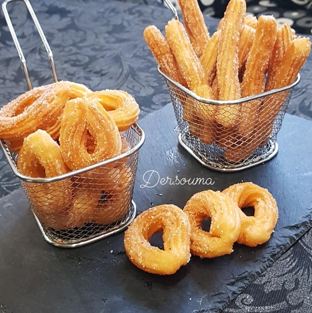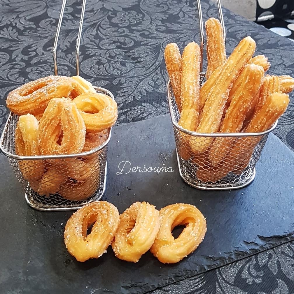 صافي نبداو بتشكيلها كنخرجوها من البوق دالحلوى حتى نساليو الكمية كلها اللي عدنا دالعجين ونبدا نقلي فالزيت