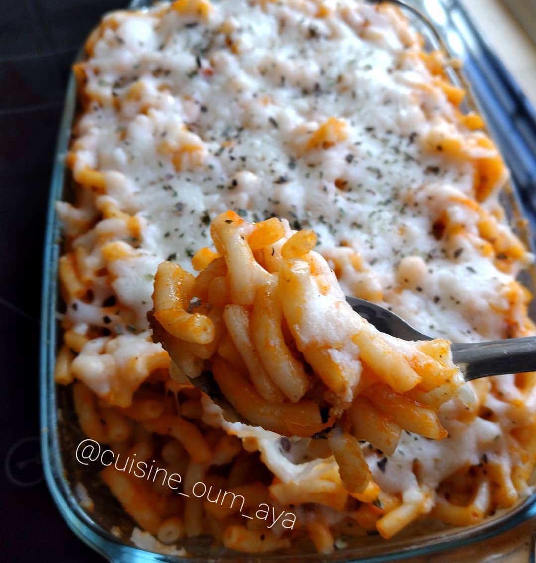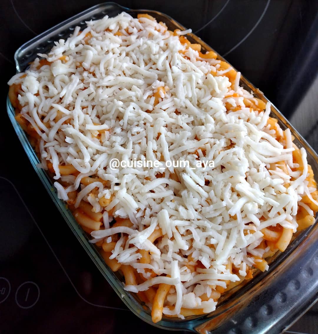 ونضيف الخليط على المعكرونة بعدما تستوي