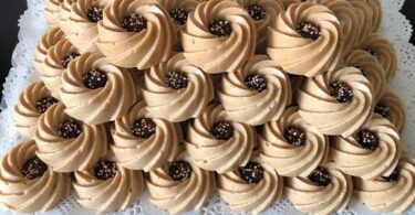 عند التقديم تقلب في صحن و تزين حسب الرغبة
