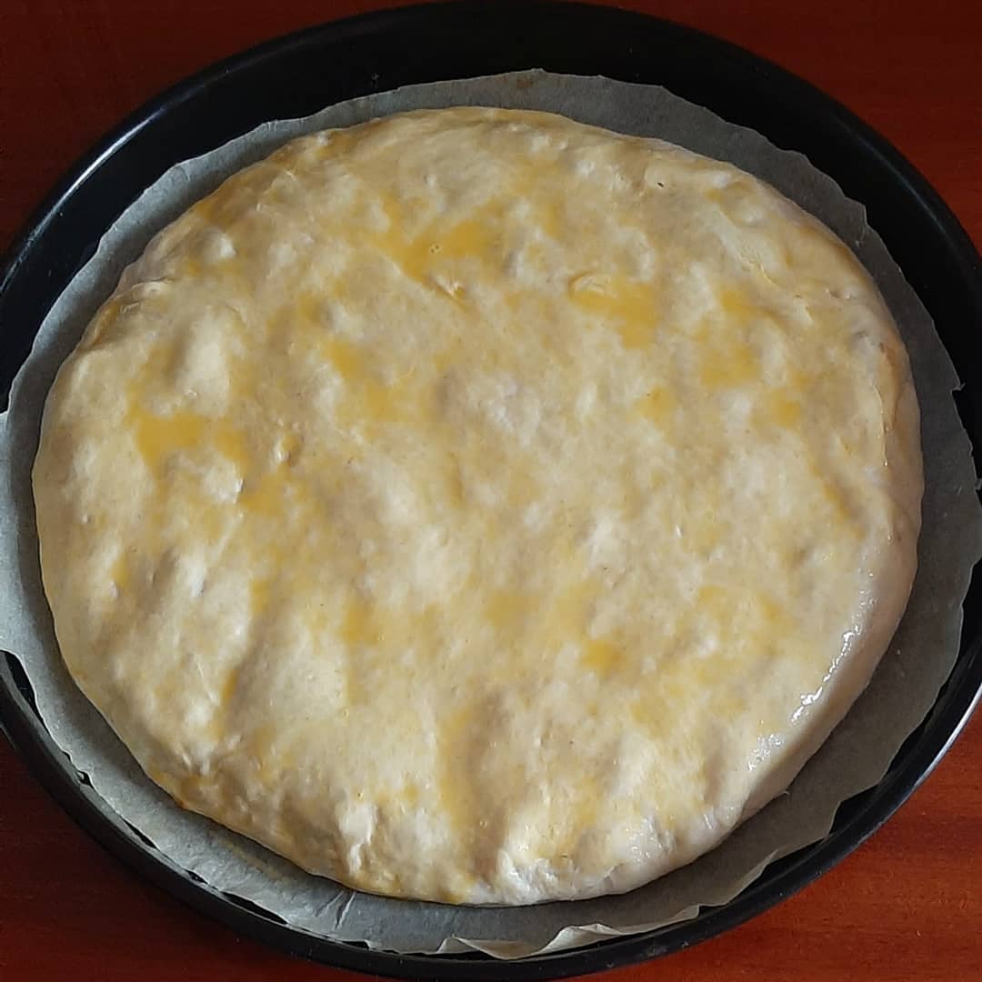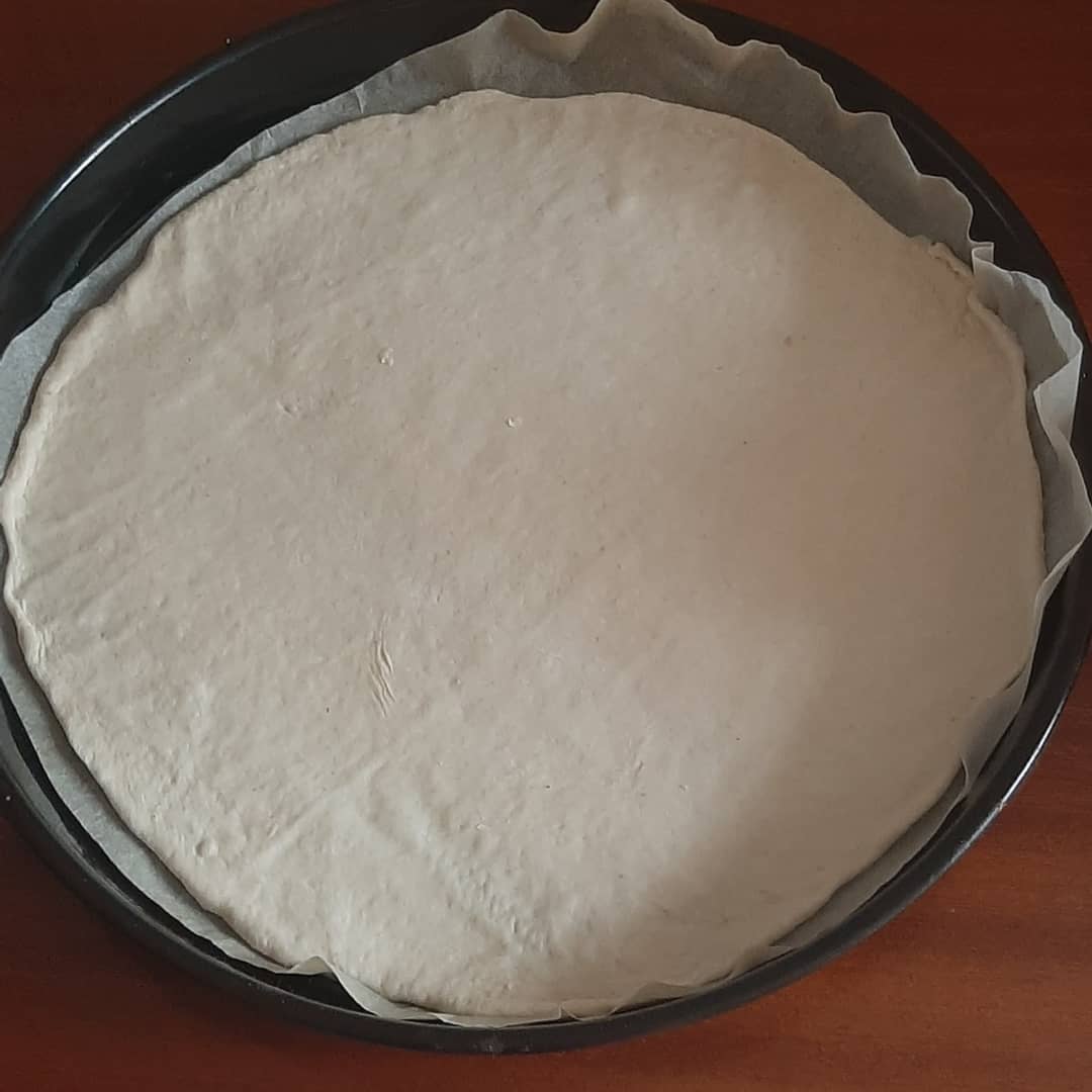 في اناء العجن نضع الدقيق ثم الملح و السكر و نضيف الماء شيئا فشيئا حتى نحصل على عجين رطب نتركه يرتاح و يتضعف حجمها و نشكل منها كرتين متوسطتين الحجم تدهن بالزيت ثم تغطى ب سولفان و نتركها ترتاح