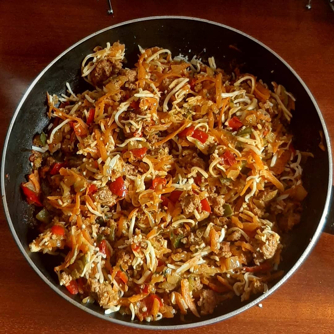 فلافل مقطعة مكعبات صغار_جزرة مبشورة_بصلة مفرومة_كفتة اي اللحم المفروم_قرعة خضراء مبشورة_التوابيل(فلفل اسود_ملح_بابريكا_سكنجبير_خرقوم_هريسة)_جبن محكوك
