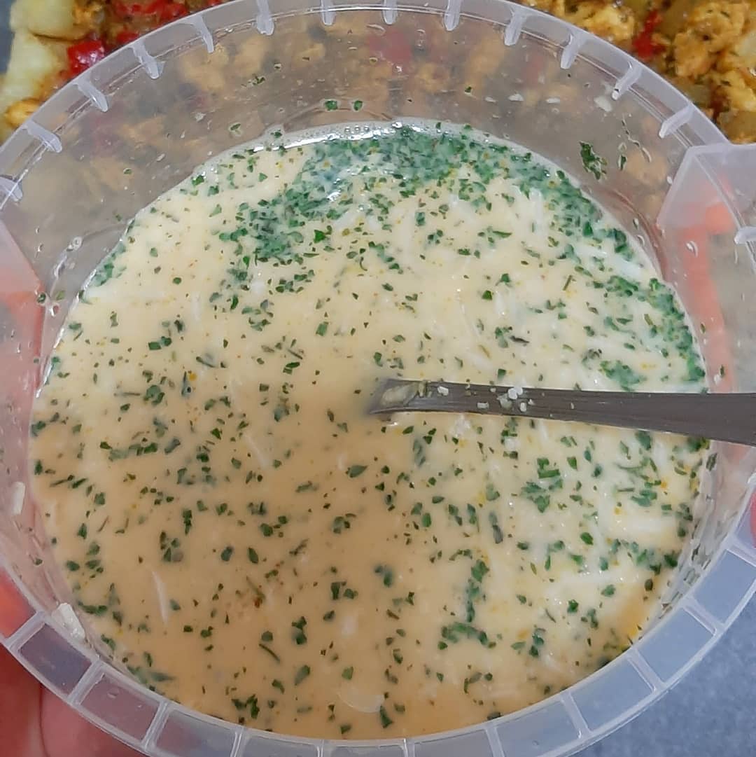 نخلط البيض نضيف الحليب و الجبن و قليل من الزعتر.