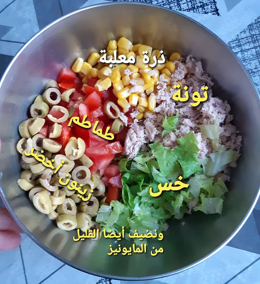 ثم نضيف الزيتون الأخضر مقطع دوائر والشعرية الصينية نخلط الكل جيدا ثم نزيلها من على النار