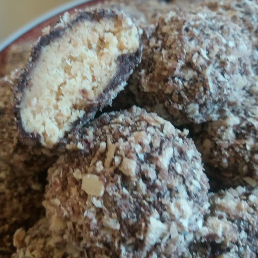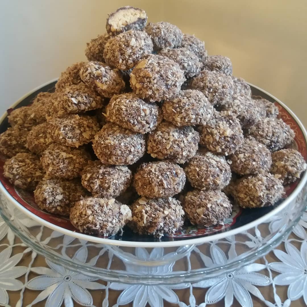 نخدمو زبدة و سكر وفاني و قشور الحامض مزيان تم نضفو بيض نحكوه ونخلطو ونزدو زيت ونخلط تم نضفو دقيق مع خمارة عجين متكونش قاصحة نشكلو كورات تدخلهم الفرن ملي طيب نخليوها تبرد ونذوبو شكلاط في حمام مريم مع شوية زيت ونغطسو حلوة ونفندها في باسطا محكوكة