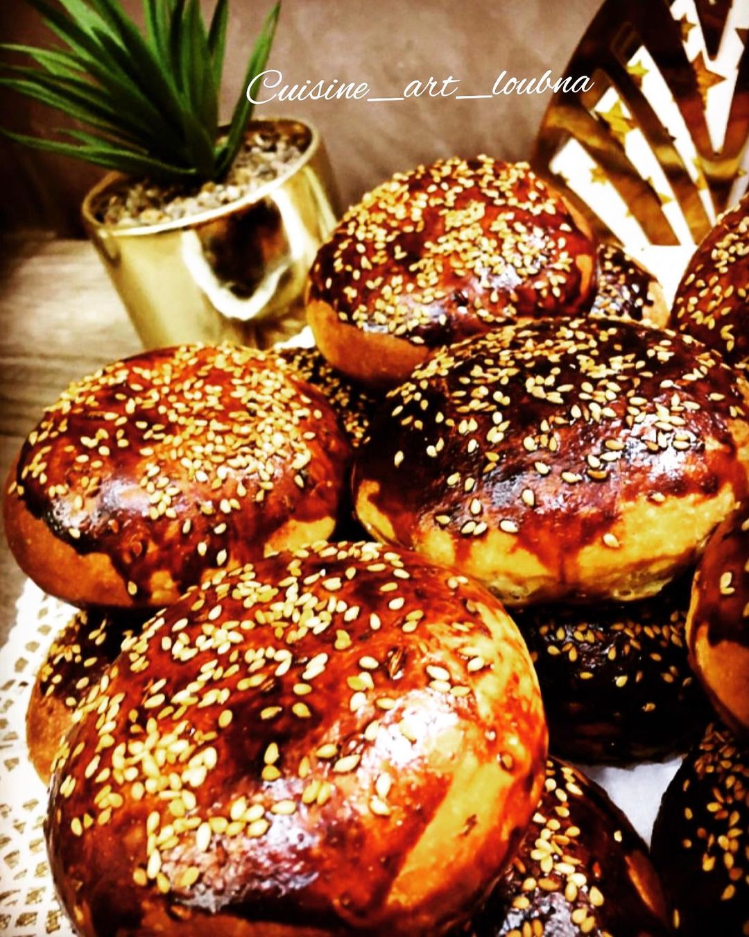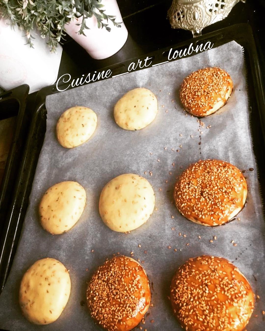 نخلطو النواشف تم نضيف البيض وماء الزهر والزبدة والزيت والماء الدافيء نعجنوها مزيان وتكون مرخوفة ونغطيوها بفيلم المونتير ونخليوها تخمر تم نعملو منها كويرات ونكرصوهم شوية بيدينا غير شوية من الفوق ونخليوهم يخمرو وندهنوهم باصفر البيض ونسكافي تم الفرن وبالصحة والراحة👌