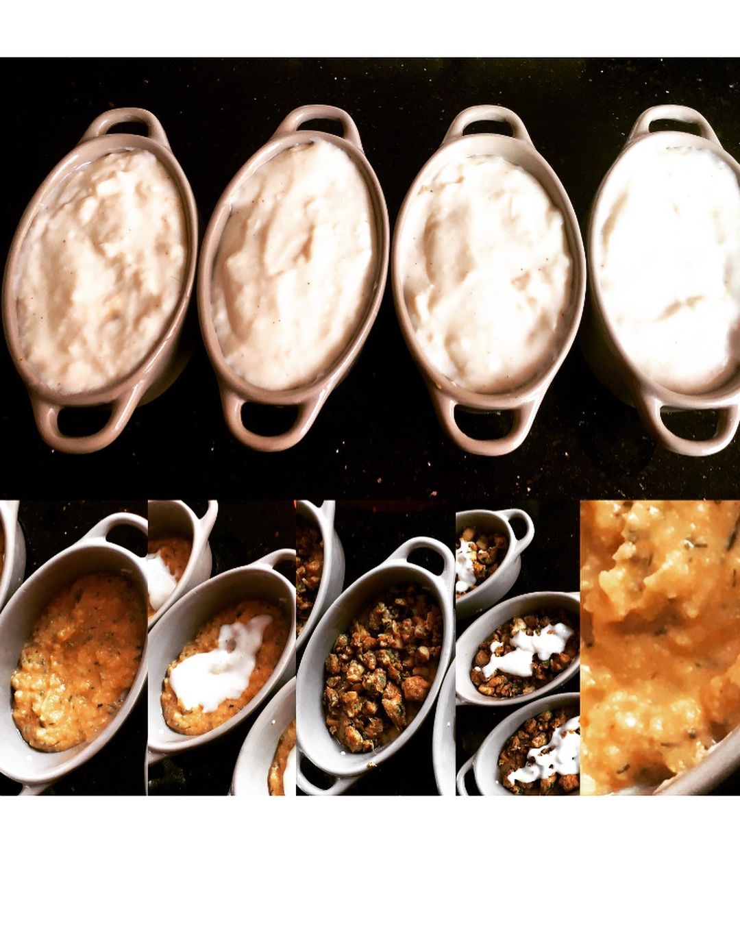 كنعملو البيشاميل : ملعقتين كبيرتين زبدة ملعقتين كبيرتين دقيق فوق نار هادئة نمزجهما جيدا تم نضيف نصف لتر حليب ملح رشة ابزار جوز الطيب مع التخلاط الى ان يتماسك 🟠ناخد مولات فردية او مول كبير حسب الرغبة نعمل ملعقة بيشاميل وطبقة من البطاطس وشوية بيشاميل و👆طبقة من حشو الدجاج المذكور أعلاه👆