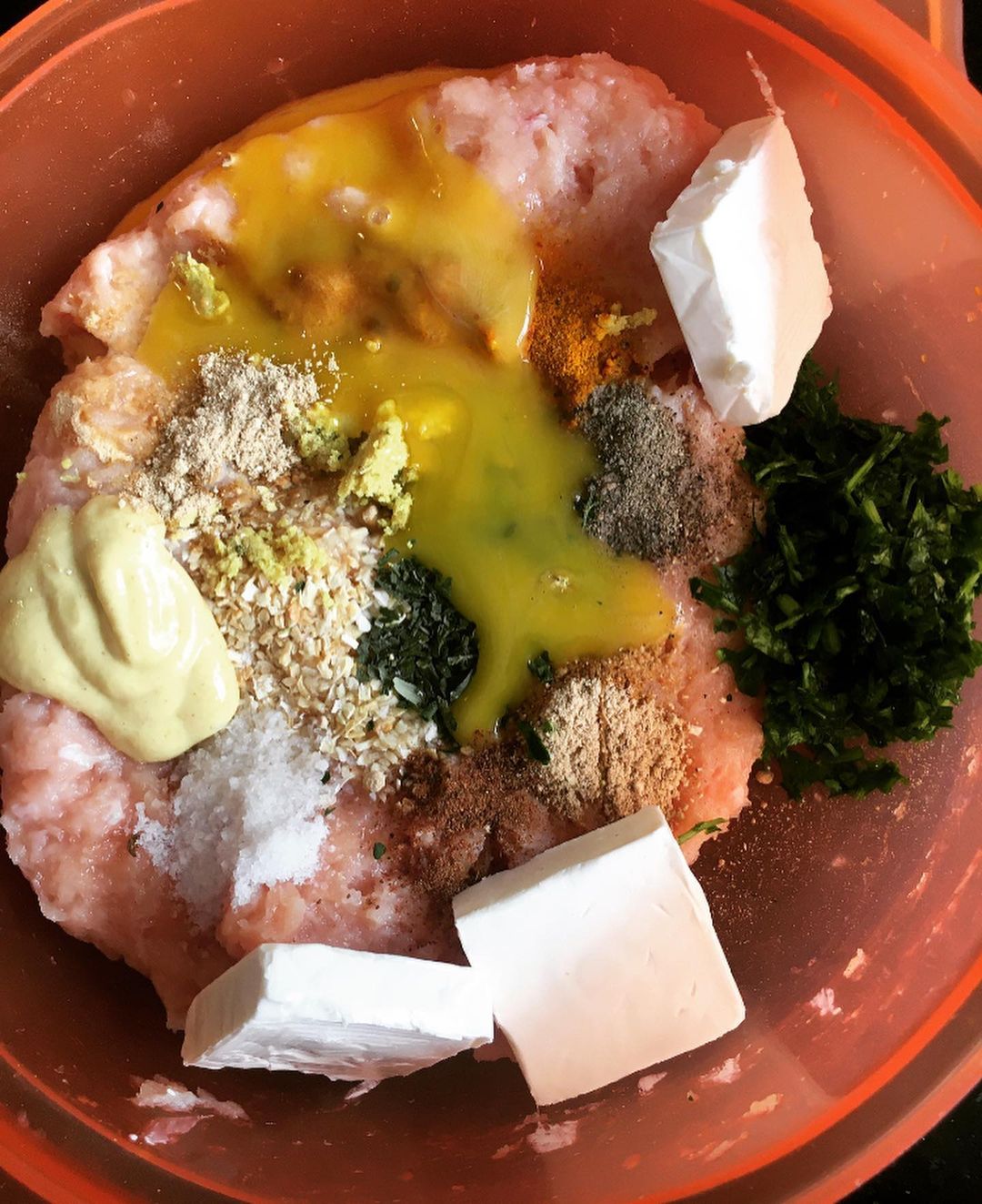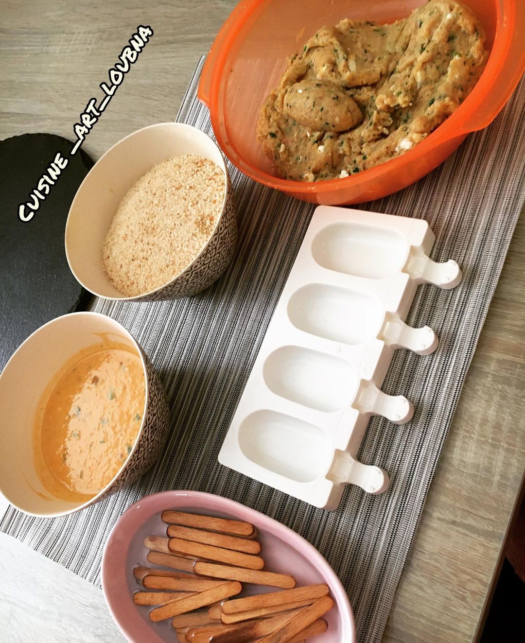 فاالخليط 🤏:بيضة نصف كاس حليب ملح تحميرة ابزار سكنجبير دقيق نخلطوهم مزيان يكون الخليط تقيل بحال ديال المعقودة