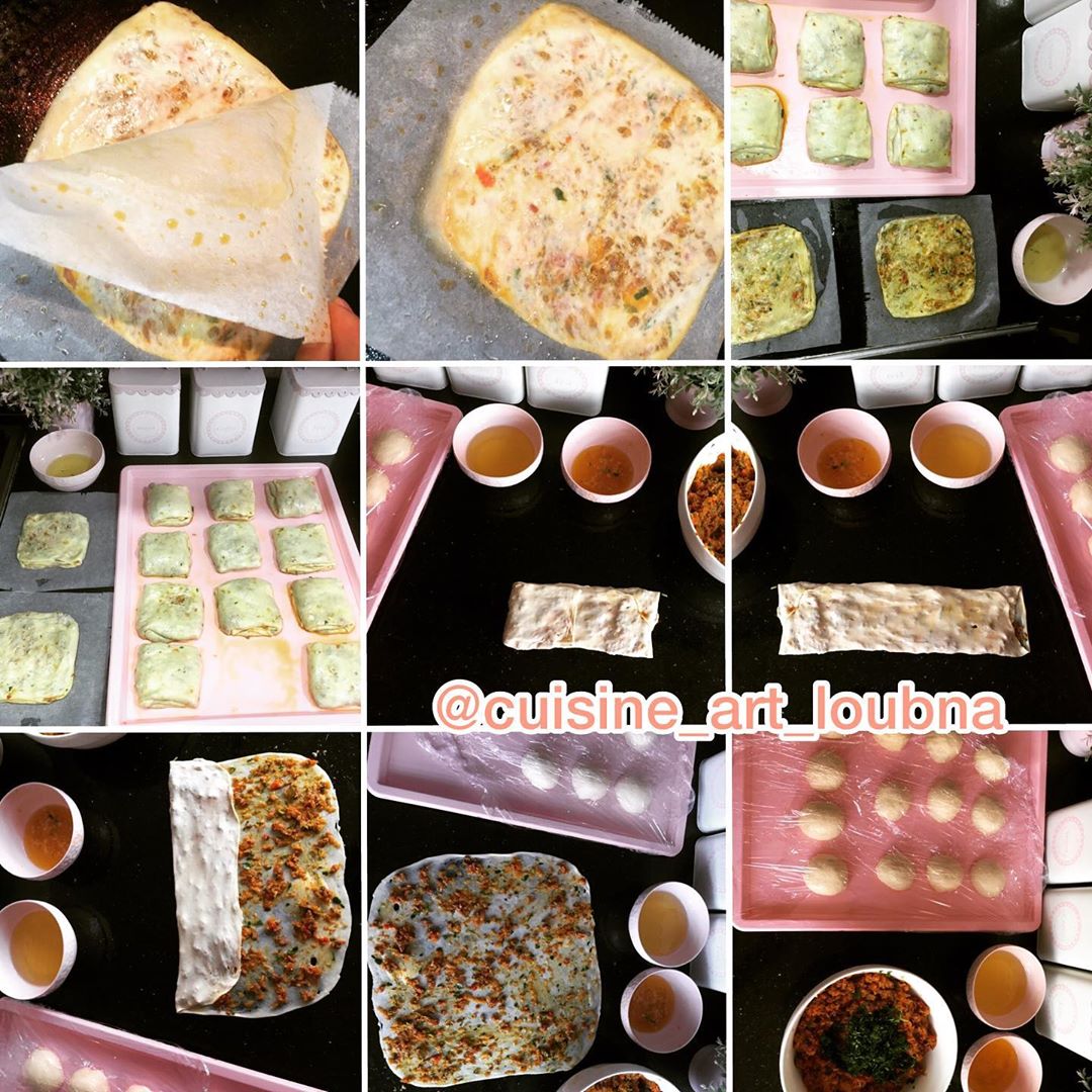 فالاخير نضيف القزبر والمعدونس 🟠نشكل كويرات من العجين نورقوهم بالزبدة ونوزعو فوق منهم الحشو ونطويو