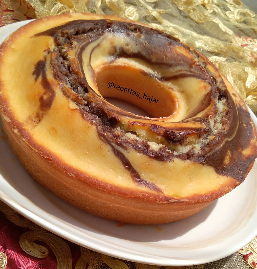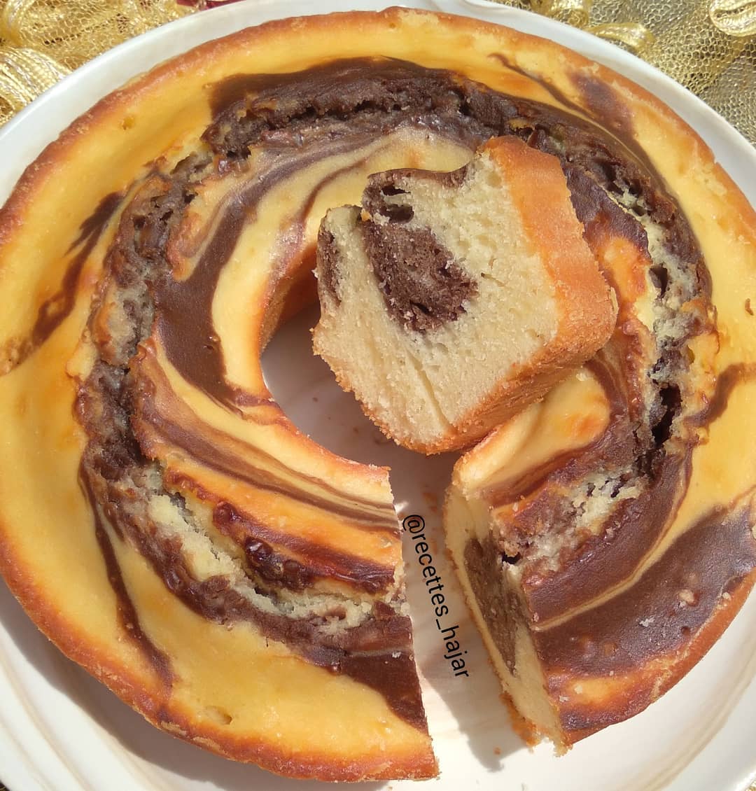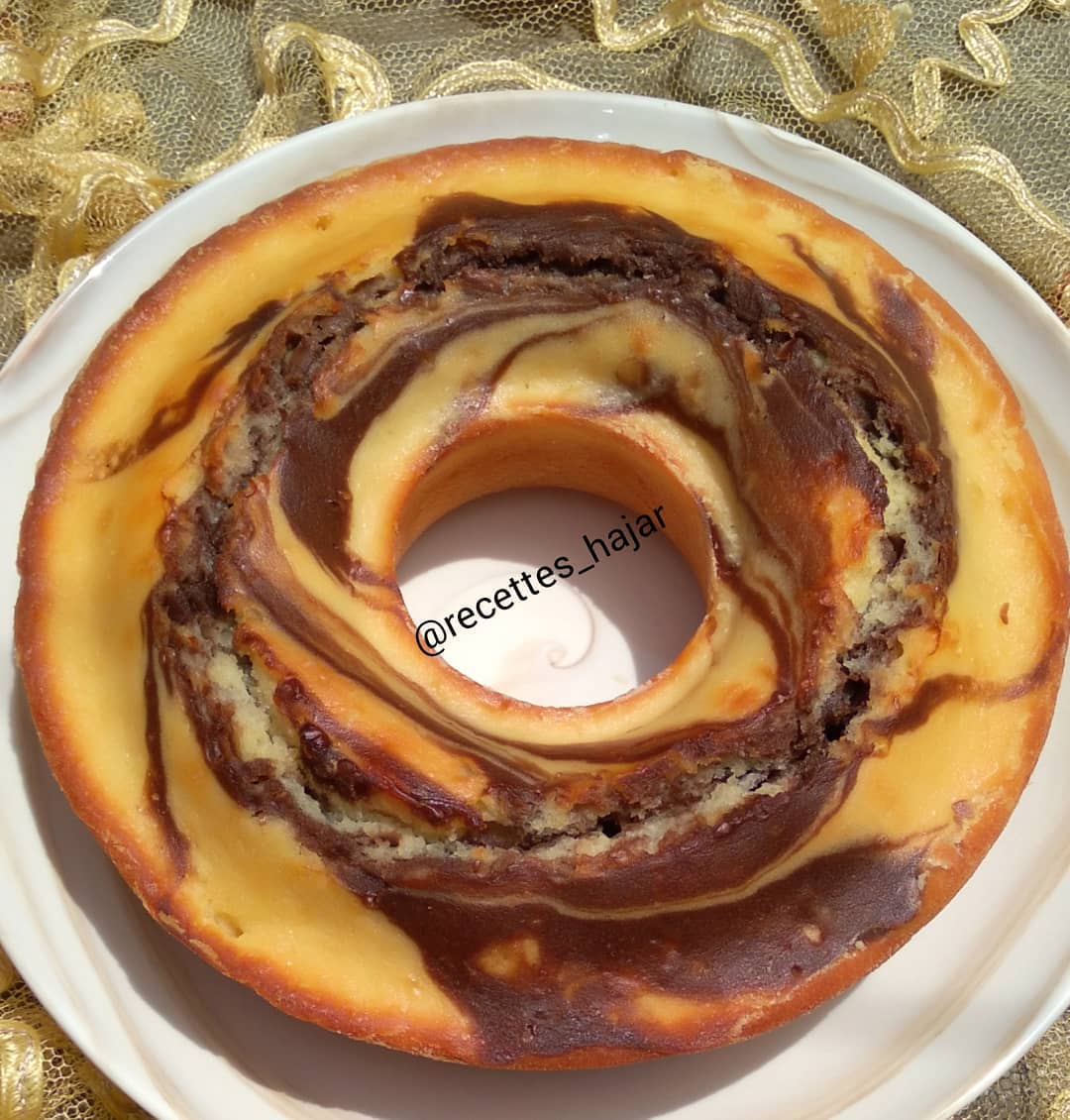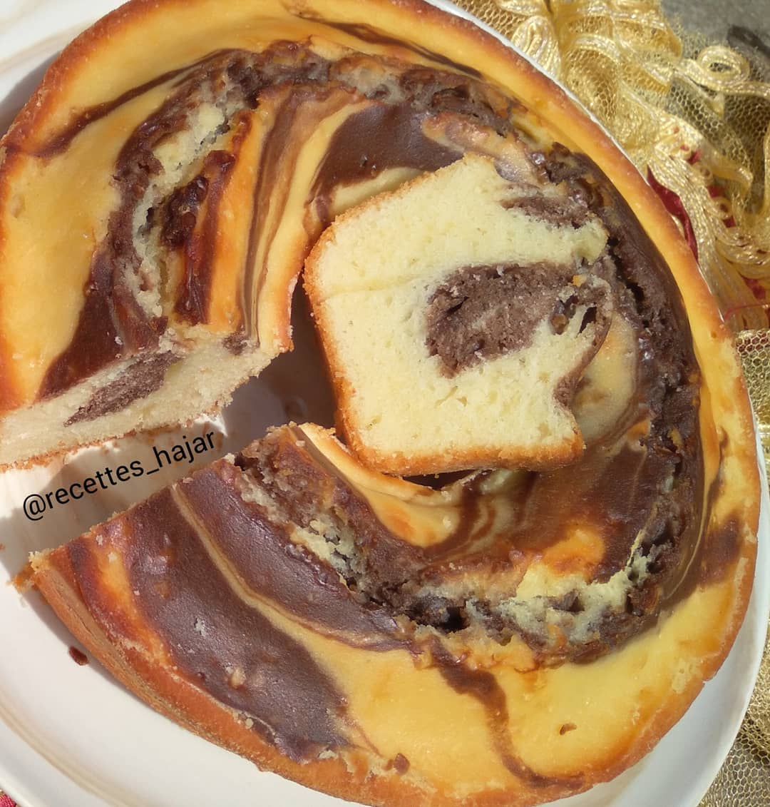ندهن المول بالزبدة ونرشوه بالدقيق نضع نصف الكمية من خليط الكيك والنصف الآخر نوضعو ليه الكاكاو نخلطه ونصبه على الخليط الأول نأخد سكين وندخله فالعجين نمرره كي يمتزج الخليط ثم إلى الفرن يكون بارد من الأحسن حتى يطيب الكيك وينتفخ…