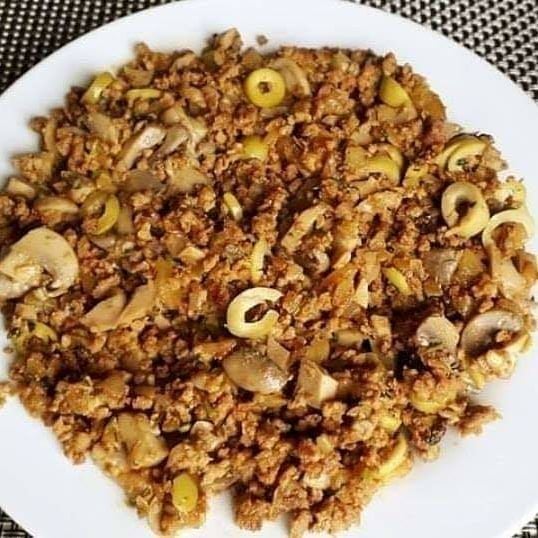 نضيف زيتون مقطع+فطر معلب+جبن مبشور