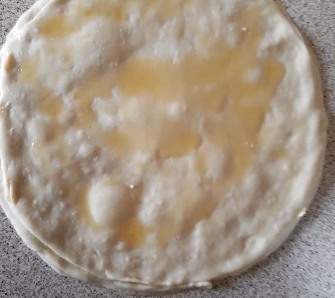 نخد كويرات ونكرص بالزيت ونورق بالزبدة ونحط 8 فوق بعض ندهن بينهم جيدا بالزبدة كما هو موظح في الصور