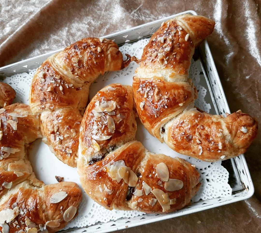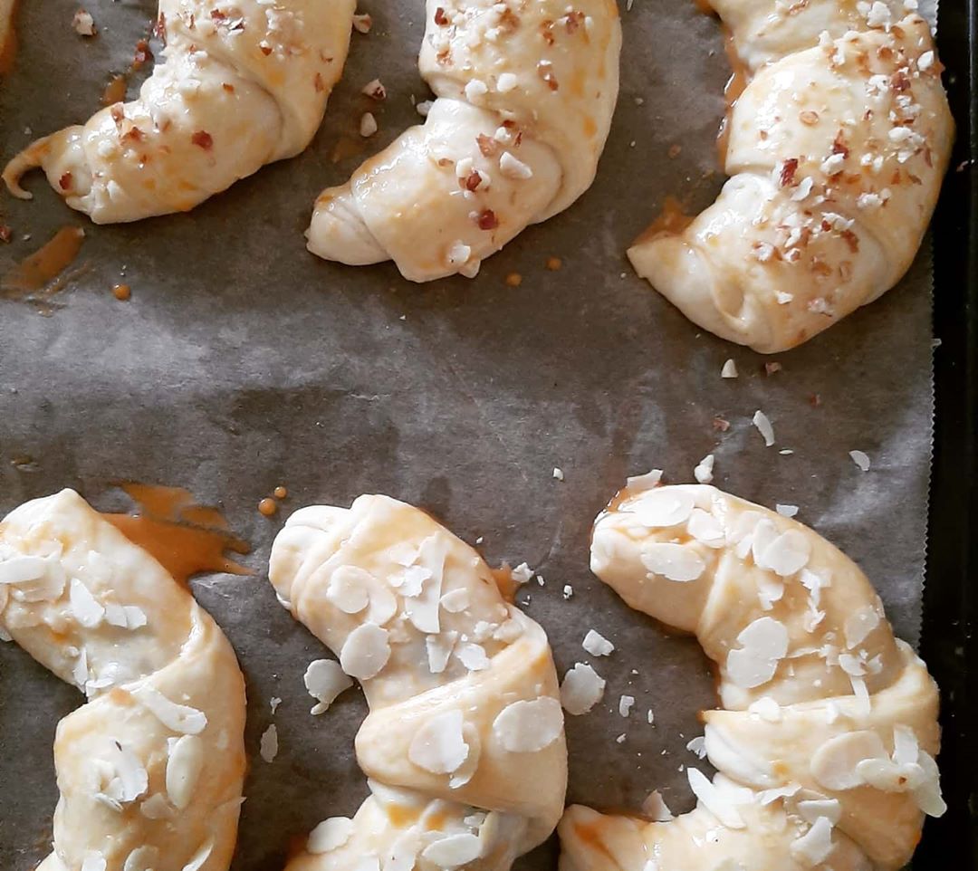 ونخد صينية نحط فيها الكرواصة ونخطيهم يختمرو مزيان وندهنهم بالصفر البيض مع النسكافي ونزينهم وندخلهم الفرن يطيبو وندهنهم بالكنفتير المشمش كنتمنا تعجبكم وتجربوها