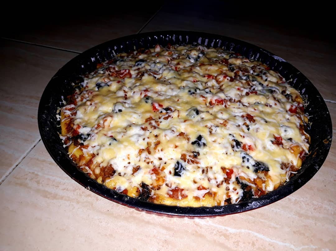 البيتزا السائلة في الفرن ساهلة ماهلة ماكين لا عجن لا دلك ههه كتجي زوينة او لذيذة