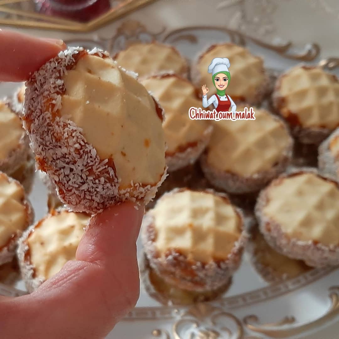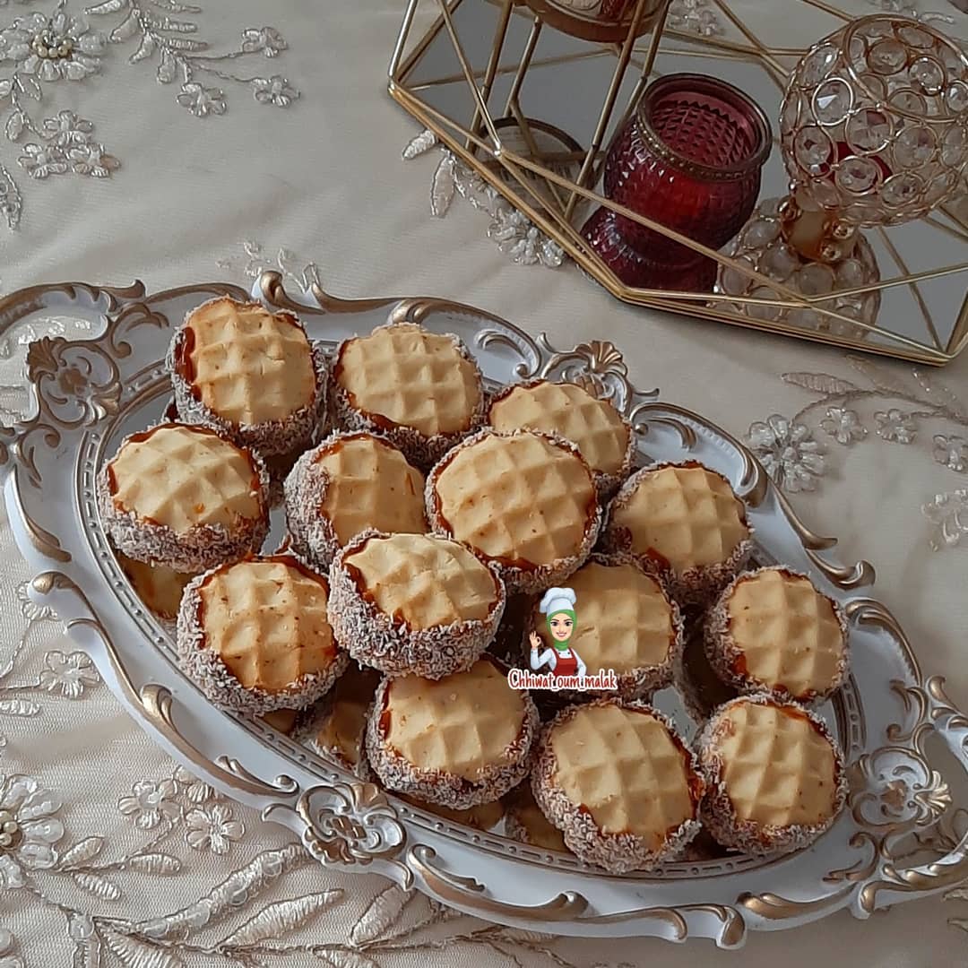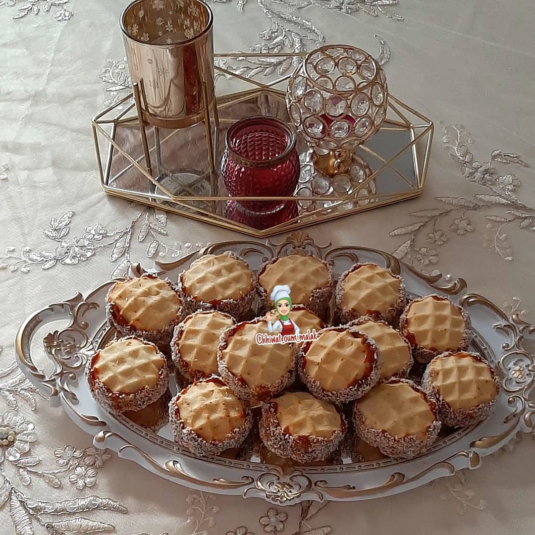ندهن الوسط بالكراميل نستلي و في الجوانب ايضا و تفند في جوز الهند (الكوك)