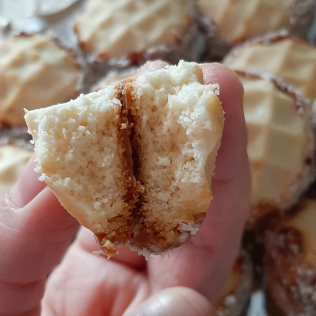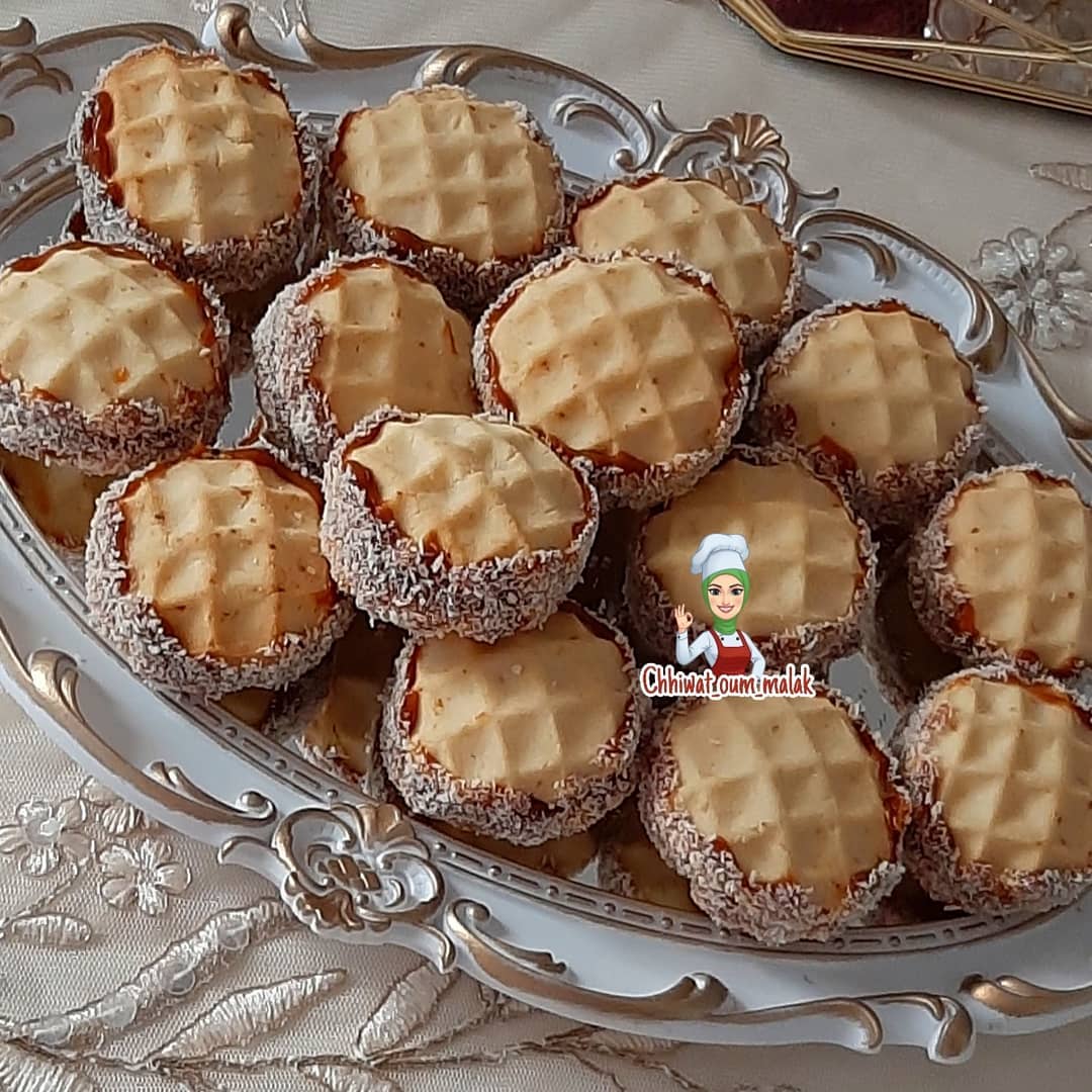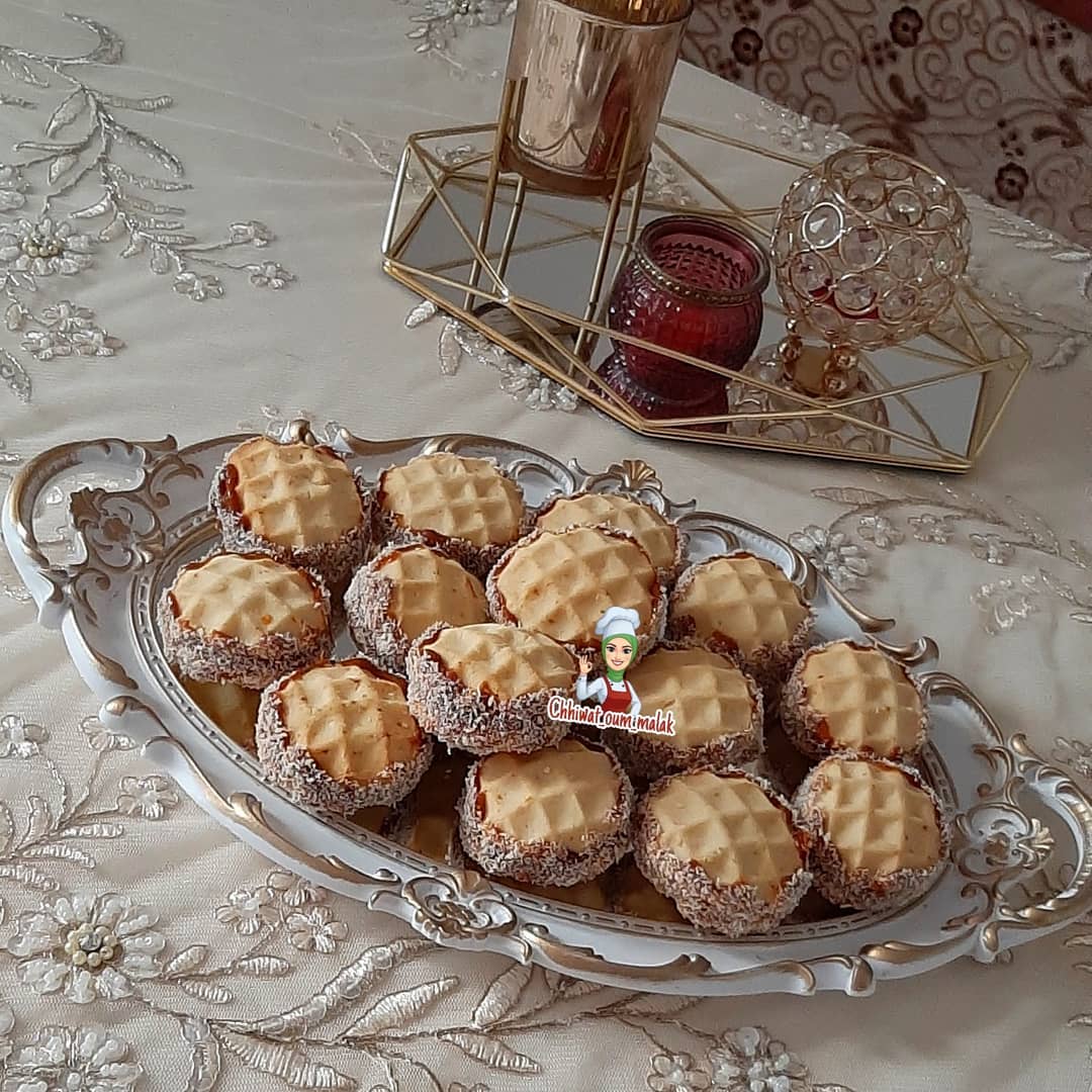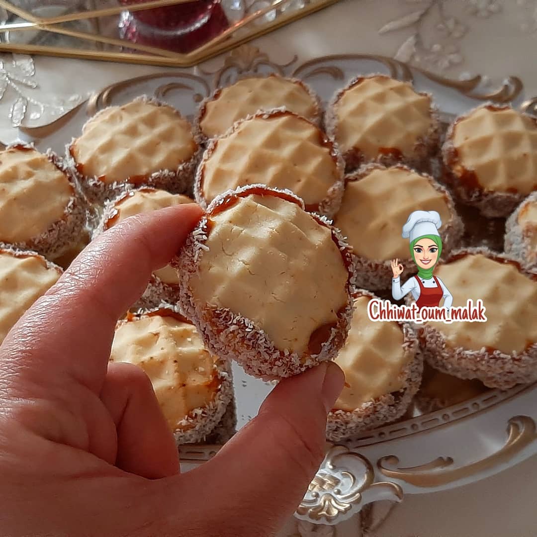 ندهن الوسط بالكراميل نستلي و في الجوانب ايضا و تفند في جوز الهند (الكوك)